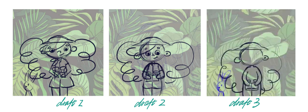 Victoria’s animation is talking about an adventure story happening to a little girl within her drawings. In that fantasy, she explored the juggle with her friend– a bunny and a fluffy lion.